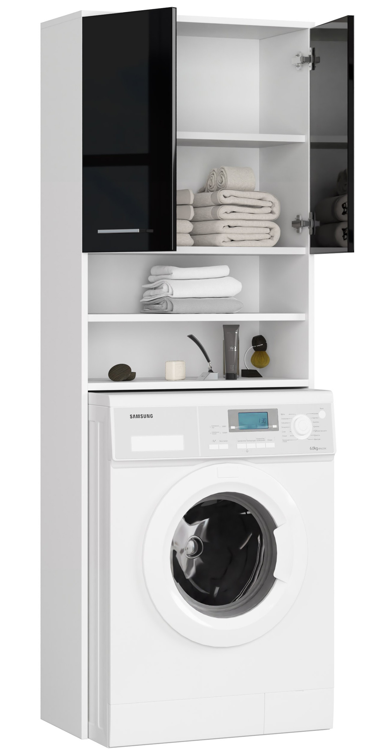 Pastatoma vonios kambario lentyna virš skalbimo mašinos, BALTA / JUODA