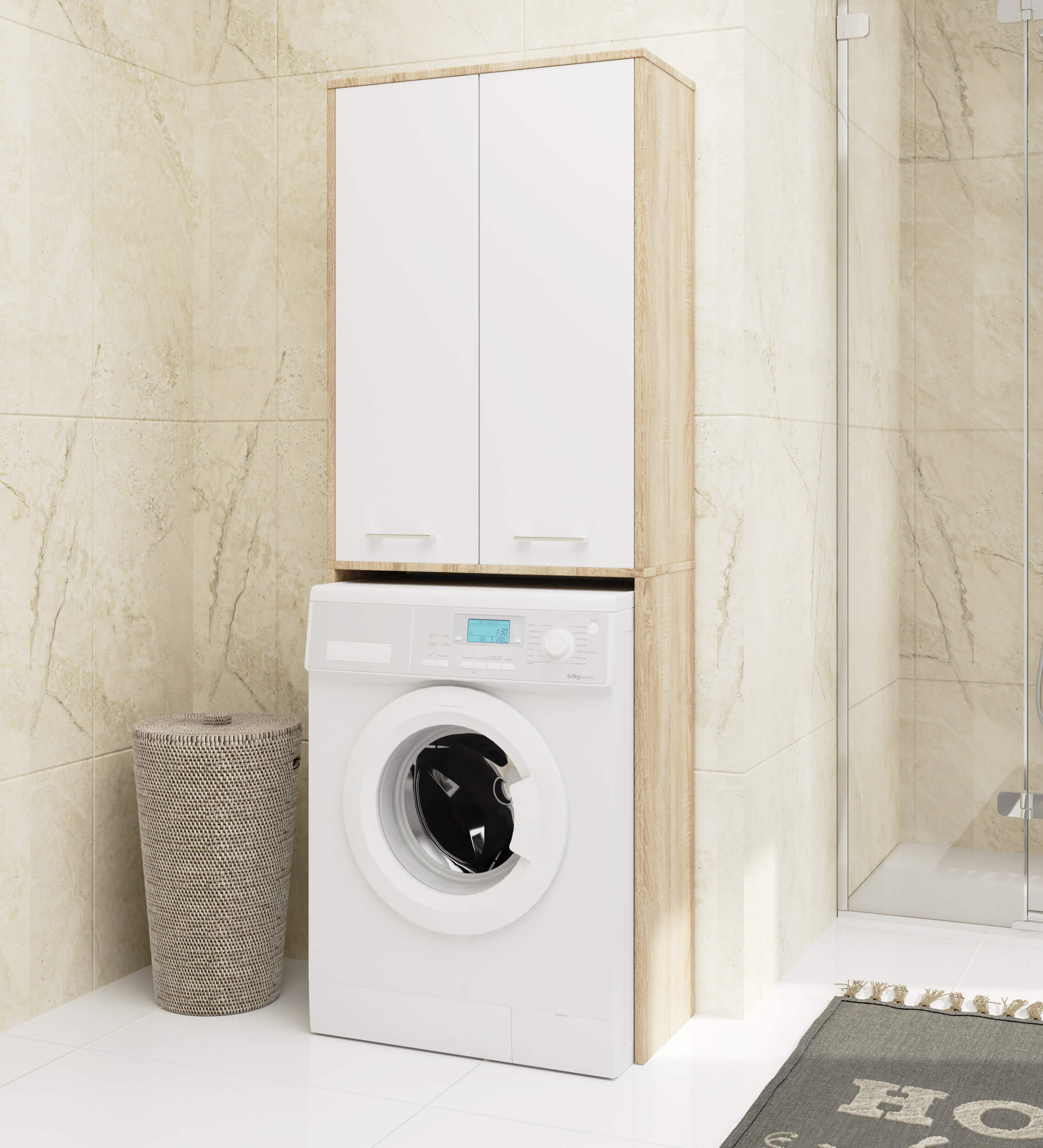 Pastotoma vonios kambario spintelė virš skalbimo mašinos, SONOMA Ąžuolas / BALTA
